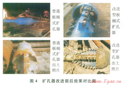 2)擴(kuò)孔階段,采用了新型Æ168.3mm(V-150)鉆桿,改進(jìn)了擴(kuò)孔器類型,優(yōu)化了水力參數(shù),成功完成了擴(kuò)孔施工,極大地提高了擴(kuò)孔效率。
