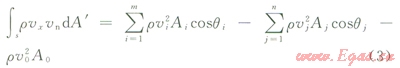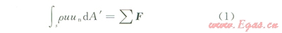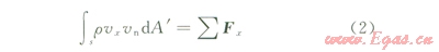 式中vxx軸方向的分速度,ms;vn為流體速度,ms;Fx為作用于控制體上的力在x軸方向的分量,N。