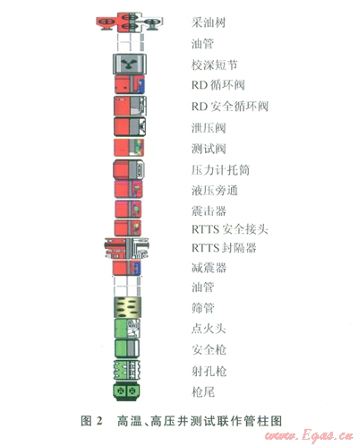 導(dǎo)向引鞋+射孔槍+點火頭+篩管+RTTS封隔器+安全接頭+液壓旁通閥+震擊器+壓力計托筒+LPR-N+放樣閥+RD安全循環(huán)閥+RD循環(huán)閥+校深短節(jié)+油管+采油樹(或井口控制頭)(2)