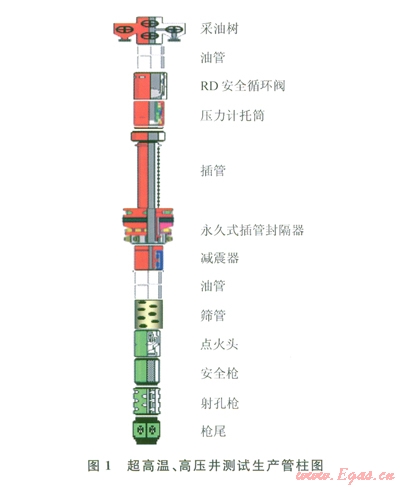 導(dǎo)向引鞋+射孔槍+點火頭+篩管+永久式插管封隔器+壓力計托筒+RD安全循環(huán)閥+油管+采油樹(1)。