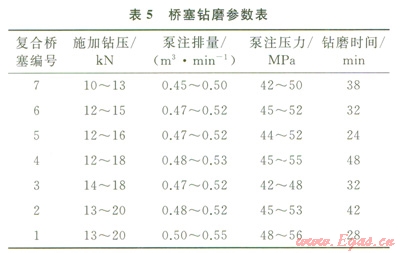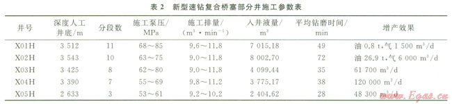 自主研制生產(chǎn)的新型速鉆復(fù)合橋塞已成功應(yīng)用已20余井次,橋塞動作靈活,密封可靠,鉆磨效率高,表2為其中5口井的施工參數(shù),下面針對某一實例井的應(yīng)用情況進(jìn)行分析。
