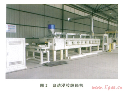 纏繞成型是在控制纖維張力和預(yù)定線型的條件下,利用了浸膠機、纏繞機等設(shè)備將連續(xù)的纖維粗紗或布帶浸漬了特殊樹脂膠液后纏繞在相應(yīng)制品內(nèi)腔尺寸的芯?;騼?nèi)襯上,使用固化爐控制升溫率加熱至設(shè)定溫度,使復(fù)合材料固化成要求的形狀。