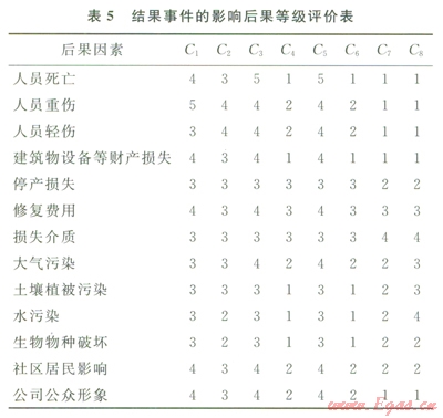 2.1 確定各后果因素的權(quán)重系數(shù)
