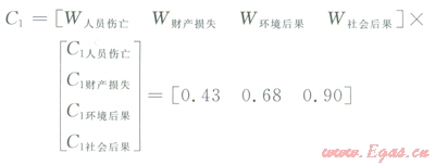 式中A1表示人員傷亡、A2表示財產(chǎn)損失、A3表示環(huán)境后果、A4表示社會后果。