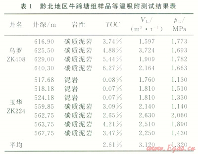 為改善能源結構,改變貴州省無油少氣的局面,貴州省人民政府于20123月開展了貴州省頁巖氣資源調查評價項目,針對貴州省黑色頁巖目的層,施工了27口調查井(2)。本文的主要數據即來源于《貴州省頁巖氣資源調查評價報告》,所公布的數據為將國內有資質的測試單位與國外測試機構提供的數據比較修正后的結果。