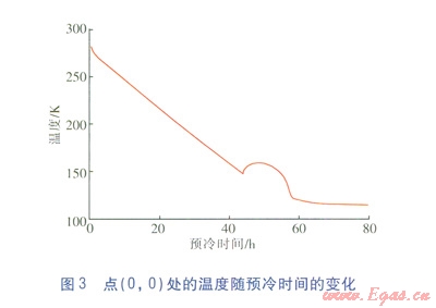 ②針對(duì)LNG儲(chǔ)罐噴淋預(yù)冷過程,儲(chǔ)罐底部中心的溫度并不是隨著預(yù)冷過程的進(jìn)行而一直降低的,當(dāng)儲(chǔ)罐底部溫度降低到一定程度后,底部中心出現(xiàn)了溫度不降反升的現(xiàn)象。這是二次回流和底部混凝土向罐內(nèi)導(dǎo)熱共同作用的結(jié)果。