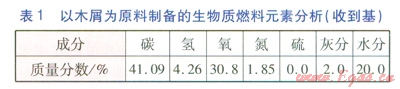 以木屑為原料制備的生物質(zhì)燃料元素分析(收到基)見表l。生物質(zhì)燃料的低位發(fā)熱量為14.46MJkg。
