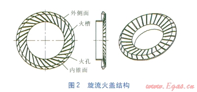 燃燒器火蓋設(shè)計成旋流結(jié)構(gòu)