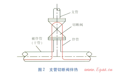 i.當被伴管為干管,其支管不需伴熱時,支管上的第一個切斷閥應(yīng)予以伴熱,見圖2。