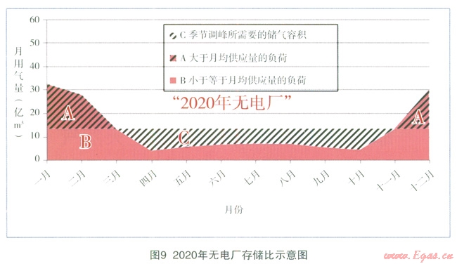 預(yù)計到2020年,管網(wǎng)“有電廠”與“無電廠”相比,低負(fù)荷運轉(zhuǎn)的月份將有所減少,月用氣量達(dá)到高峰月氣量50%以上的月份將由3個增加到5個,月用氣量在高峰月氣量20%以下的月份將由4個減少到1個。