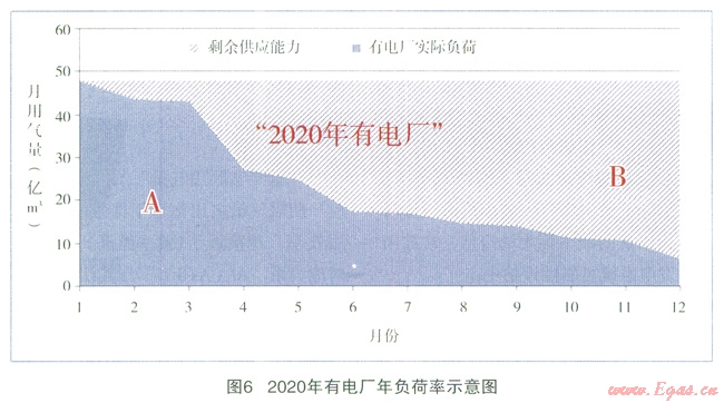 預(yù)計到2020年,“有電廠”的偏離度為0.34,“無電廠”為0.61,“有電廠”可以明顯縮小各月間用氣的不均勻性,使一年內(nèi)的負(fù)荷變化趨于平衡。