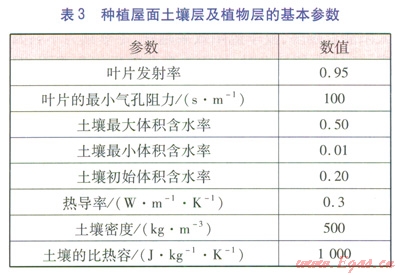 屋面的生態(tài)環(huán)境與地面明顯不同,受屋面自然條件的限制,太陽輻射、溫度、濕度、風力等隨著層高的增加而呈現不同的變化,因此屋面的參數優(yōu)化選取至關重要。種植屋面通過遮陽作用、熱阻、蒸騰蒸發(fā)作用來實現節(jié)能的效果。葉面積指數(簡稱LAI,是指單位土地面積上植物葉片總面積與土地面積之比,是一個無因次量)和植物高度影響植物的遮陽作用,屋面構造和土壤參數影響種植屋面的熱阻,土壤含水率和植物種類及特征影響蒸騰蒸發(fā)作用。