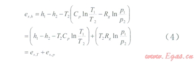 (4)式可以看出,穩(wěn)流物質(zhì)的用可分解為兩部分,即在某一壓力下系統(tǒng)與環(huán)境之間因熱不平衡而具有的溫度用ex,T和在環(huán)境溫度時(shí)系統(tǒng)與環(huán)境之間因力不平衡而具有的壓力用ex,T。分析表明天然氣在高中壓降壓過程中可回收的最大壓力用為
