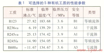 2 有機工質(zhì)選取