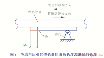 摘 要:針對(duì)架空供熱管道,對(duì)升溫引起的熱伸長(zhǎng)量及內(nèi)壓引起的伸長(zhǎng)量的計(jì)算方法進(jìn)行分析。在考慮內(nèi)壓引起的伸長(zhǎng)量的條件下,分析架空供熱管道滑板長(zhǎng)度的計(jì)算方法。結(jié)合算例,對(duì)內(nèi)壓