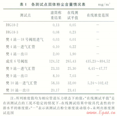 成莊6號(hào)閥組有l個(gè)測(cè)試點(diǎn)(4)。該點(diǎn)上游氣體部分來自粉塵含量較大的潘河區(qū)塊[10],通過測(cè)試可獲知其氣質(zhì)狀況。