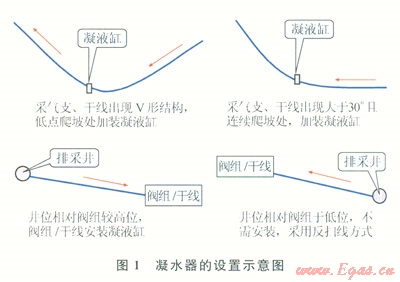 4)煤層氣中含有飽和水,隨著輸送距離和溫度變化會產(chǎn)生冷凝水,由于井口壓力低,氣體攜液能力差,冷凝水聚集在采氣管線中,使管輸能力降低。