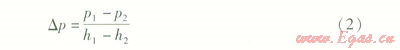 式中p1、p2——流道截面1、2處的靜壓,Pa