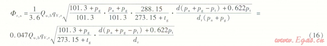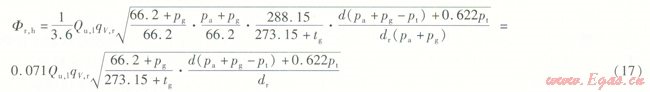 式中Fr,s——燃氣采暖熱水爐實測熱流量折算到海平面地區(qū)標(biāo)準(zhǔn)狀態(tài)下的熱流量,海平面地區(qū)標(biāo)準(zhǔn)狀態(tài)下的熱流量,Kw