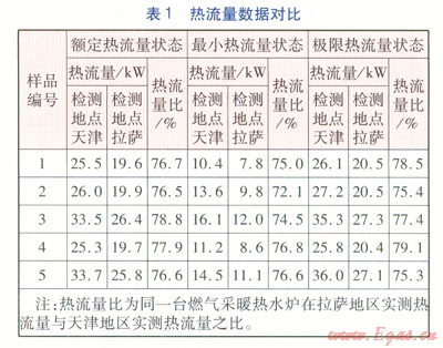 ②燃氣采暖熱水爐的熱效率:對于同一臺燃氣采暖熱水爐在拉薩地區(qū)過剩空氣系數(shù)要小于海平面地區(qū),而過??諝庀禂?shù)越大,過剩的煙氣帶走的熱量越多,熱效率越低,因此拉薩地區(qū)測得的熱效率要高于海平面地區(qū)。
