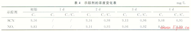 根據(jù)表4結(jié)果表明,煤粉對SCN-NO3-雖具有一定的吸附作用,但每天CiC0的值遞減較慢,4dCiC0均大于0.8,滿足示蹤劑靜態(tài)吸附實(shí)驗(yàn)要求。