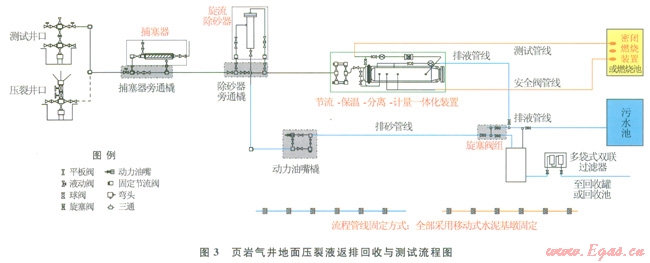 摘 要:試油測(cè)試作業(yè)是油氣田開(kāi)發(fā)中不可缺少的環(huán)節(jié),環(huán)保試油是一種全新的發(fā)展理念,為此,結(jié)合川渝地區(qū)油氣田的實(shí)際情況,針對(duì)性地提出了4種試油安全環(huán)保處理的技術(shù)方案:采用移動(dòng)式固定基墩替代傳統(tǒng)的打水泥基墩坑來(lái)固定放噴測(cè)試管線(xiàn),清潔環(huán)保,作業(yè)效率高;使用密閉燃燒裝置在井場(chǎng)內(nèi)燃燒放噴天然氣體,可大大減少征地修建燃燒池的費(fèi)用以及對(duì)耕地的破壞;優(yōu)化非常規(guī)氣井放噴排液回收流程,對(duì)返排液進(jìn)行精細(xì)化過(guò)濾回收處理,處理后的液體可直接作為下層或下一口井的壓裂基液,解決了廢液排放帶來(lái)的環(huán)境污染和水資源浪費(fèi)等問(wèn)題;運(yùn)用井筒排出液自動(dòng)實(shí)時(shí)除硫技術(shù),在全密閉環(huán)境下實(shí)時(shí)除硫、消泡與中和殘酸,實(shí)現(xiàn)含硫井排出液在污水池內(nèi)的安全排放,保護(hù)了環(huán)境。上述系列技術(shù)已經(jīng)在四川盆地高含硫氣井和頁(yè)巖氣等非常規(guī)氣井中開(kāi)展了廣泛的應(yīng)用,效果較佳,為常規(guī)的試油測(cè)試工藝注入了新鮮的血液。
