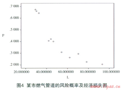 通過上述步驟可得知,燃氣管道在每一規(guī)定時間段內(如1年)發(fā)生事故的概率以及事故發(fā)生后所造成的經濟損失,使用回歸分析法對數(shù)據(jù)進行擬合。