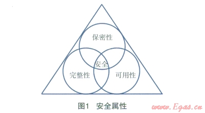 信息的安全風險主要來自于信息的保密性、完整性和可用性。在企業(yè)中,信息可能會通過口頭、網(wǎng)絡(luò)、打印機、復(fù)印機、存儲設(shè)備等途徑不經(jīng)意地泄露。要避免重要信息的泄露,在信息的傳遞和保管過程中要把好關(guān);然后,還要防止信息被誤變更或被惡意變更,做到保護信息的完整性;最后,要做好信息源頭的安全保障,即要保障信息處理設(shè)備和信息傳遞渠道的高可用性。制定清晰的信息處理流程,建立滿足服務(wù)的完善運維保障,以及設(shè)法保持業(yè)務(wù)連續(xù)性管理都是保證信息高可用的重要措施。正是信息的這3個屬性結(jié)合才形成了信息的安全性,如圖1所示: