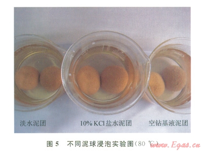 2)泥球浸泡實(shí)驗(yàn):分別用淡水、濃度100kg/m3的KCl鹽水和霧化基液分別做成泥球在成膜液中(80℃)進(jìn)行浸泡實(shí)驗(yàn),對(duì)比分析成膜情況。