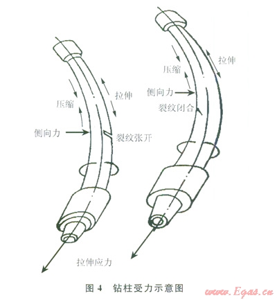 狗腿下的浮重這一因素恰恰明晰了此類(lèi)井發(fā)生這種刺漏、斷失效的根本原因所在,即便狗腿度不大,如果造斜點(diǎn)太淺,狗腿下的浮重產(chǎn)生的拉應(yīng)力若達(dá)到鉆具疲勞累積極限,鉆具就將發(fā)生失效。