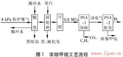 ② 由于熱值高,在滿足同等規(guī)模用戶需求的情況下,濃縮甲烷比焦?fàn)t煤氣輸送量小,可降低管道及輸送設(shè)備的造價(jià)。