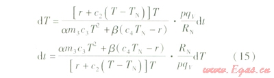 式(18)表示了常壓罐預(yù)冷時(shí)間t與罐內(nèi)溫度T的關(guān)系。