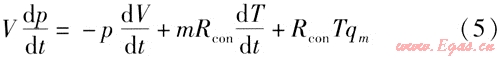 ② 調(diào)壓器內(nèi)氣體參數(shù)采用集中參數(shù)法處理,即認(rèn)為同一個(gè)腔室內(nèi)氣體分布均勻,參數(shù)處處相等;