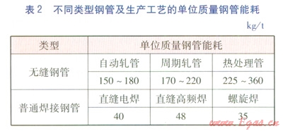 根據(jù)保溫管道工藝要求,DN 250mm及以下采用無(wú)縫鋼管(自動(dòng)軋管),DN 250mm以上采用螺旋焊鋼管。能耗數(shù)據(jù)采用平均水平,DN 100、200mm鋼管的單位質(zhì)量能耗取163kgt,DN 500mm鋼管的單位質(zhì)量能耗取35kgt。