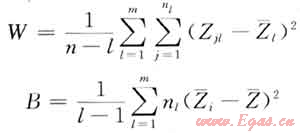 確定段內(nèi)方差W及段間方差B,其中n為有序樣品個數(shù),l為分段長度。