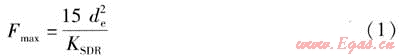 規(guī)程的公式過于簡單,公式表示Fmax僅與PE管材的公稱外徑de及標(biāo)準(zhǔn)尺寸比KSDR有關(guān)。修正后的公式相對復(fù)雜,增加了σMRS和C兩個變量,這就克服了規(guī)程公式的不足之處,可以充分體現(xiàn)PE管道性能及總體設(shè)計系數(shù)的差異性。
