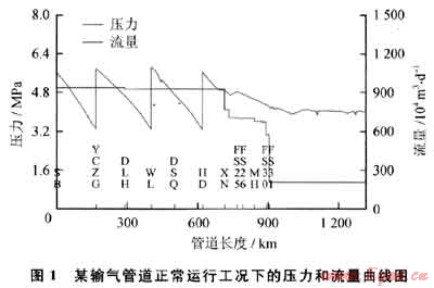 輸氣管道的運行工況可以分為正常工況和異常工況。。正常工況包括了管道啟輸、啟停壓縮機組、壓縮機組切換、越站輸氣、分輸用戶的氣量調整和氣源進氣量的調整等。異常工況包括了管道泄漏(爆管)、管道堵塞(冰堵)、干線截斷閥意外關斷、運行機組故障停運、通訊中斷和站場故障停運等。