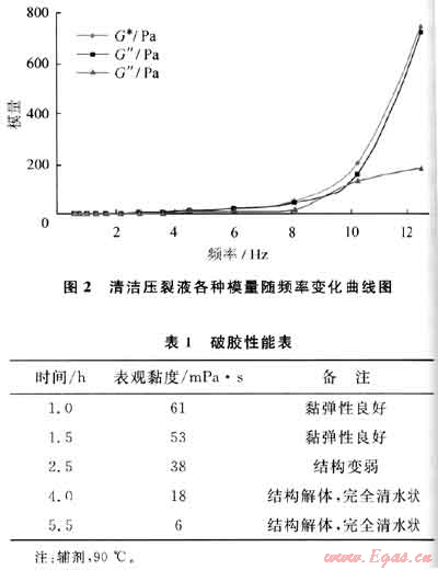 1) 室內實驗表明:清潔壓裂液彈性性能好、攜砂性能和破膠性能優(yōu)良,具有低摩阻和低傷害、易返排的特點。