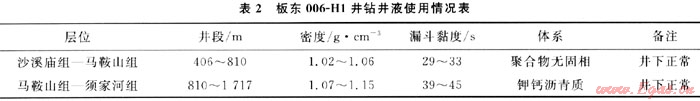 4) 鉆井液性能是保持井眼穩(wěn)定,井底清潔的關(guān)鍵因素。要根據(jù)井下情況及時(shí)調(diào)整鉆井液性能,合理控制鉆井液密度,維護(hù)井壁穩(wěn)定,保證井下安全,保證工具安全。