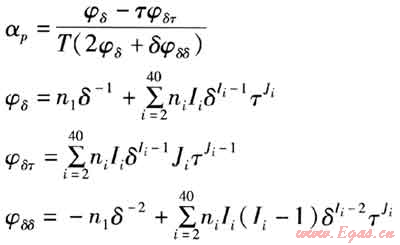 在區(qū)域3中,φ(δ,τ)以折算密度δ和折算溫度τ為獨(dú)立變量。壓力的關(guān)系表達(dá)式如下: