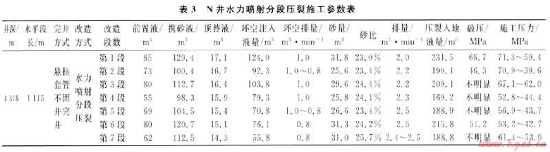 1) 水力噴射分段改造工藝實(shí)現(xiàn)了水平井的定點(diǎn)壓裂,提高了儲層改造的針對性,增產(chǎn)效果明顯,具有較好的經(jīng)濟(jì)效益。