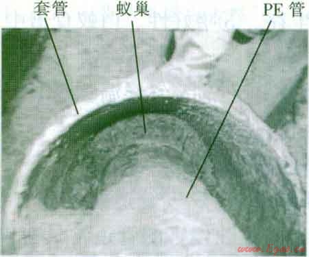 圖1 PE管與鋼套管問(wèn)被蟻巢填滿