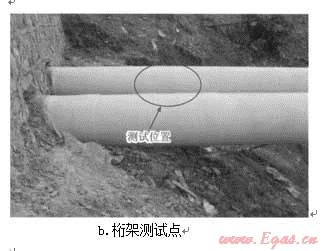 在中國石化中原油田分公司普光氣田公司(以下簡稱普光氣田)的協(xié)助下,根據(jù)測試位置的要求,最終選取了斜拉橋和桁架處作為管道積液測試位置(圖5)。