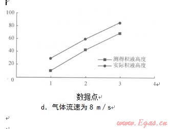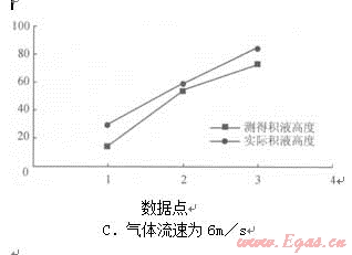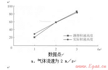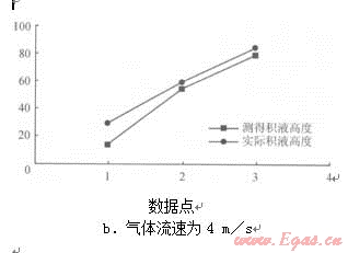 圖4不同氣體流速下實(shí)際積液高度與測得積液高度的對比圖