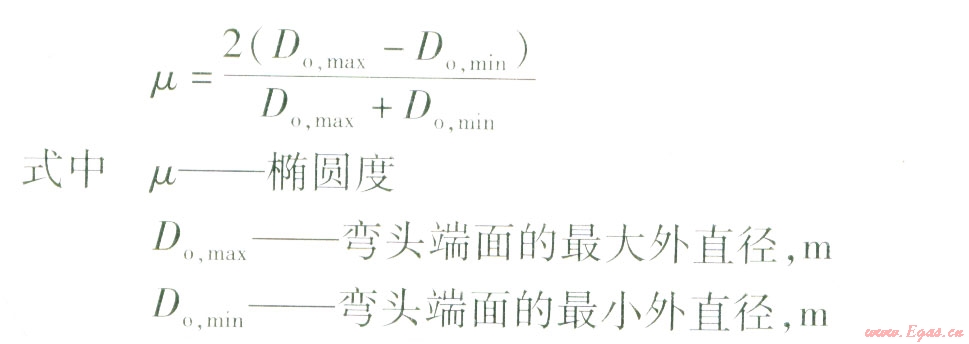 彎頭具有一定的橢圓度可以降低彎頭應(yīng)力,橢圓度控制在8%是合理的,若嚴格限制在6%以下,既增大成本又提高了彎頭的應(yīng)力。