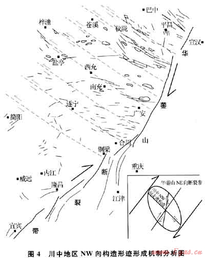 值得指出,川中地區(qū)上述兩種類型的NW向構(gòu)造形跡是疊加在NE向構(gòu)造背景上,其形成時間應(yīng)是燕山晚期-喜馬拉雅期。