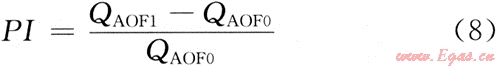 根據(jù)防砂前后的產(chǎn)能試井資料計(jì)算出的無(wú)阻流量可計(jì)算相應(yīng)的變化比,變化比的大小反應(yīng)防砂措施改善井底流動(dòng)條件的好壞。假設(shè)防砂前、后的氣井無(wú)阻流量為QAOF0和QAOF1,則變化比(PI)為: