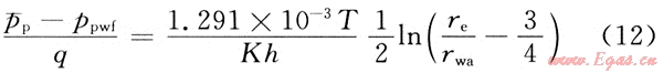 同時(shí),對于圓形封閉邊界中心一口單相擬穩(wěn)定流動(dòng)氣井,有