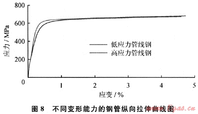 鋼管的屈曲應(yīng)變決定于其應(yīng)力應(yīng)變曲線。不同鋼管的應(yīng)力應(yīng)變曲線是不同的。控制鋼管應(yīng)力應(yīng)變曲線的簡捷方法是對(duì)那些描述應(yīng)力應(yīng)變行為的指標(biāo)進(jìn)行控制。與鋼管屈曲應(yīng)變相關(guān)的性能指標(biāo)包括屈強(qiáng)比、均勻變形延伸率、形變硬化指數(shù)、應(yīng)力比等。