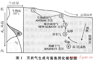 從石油地質(zhì)觀點看,烴源巖經(jīng)過一系列地質(zhì)條件作用生成大量天然氣,并在持續(xù)壓力作用下大量排出,向滲透性地層如砂巖和碳酸鹽巖運移、聚集成構(gòu)造或巖性氣藏,而殘留在細粒沉積巖層系中的部分形成頁巖氣資源[10]。其中很大部分吸附在有機質(zhì)和黏土礦物表面,與煤層氣相似,另一部分以游離狀態(tài)儲集在基質(zhì)孔隙和裂縫孔隙中,與常規(guī)儲層相似,二者構(gòu)成比例取決于多種地質(zhì)作用過程,商業(yè)開發(fā)前后的一系列研究和實踐也因此變得更復(fù)雜。